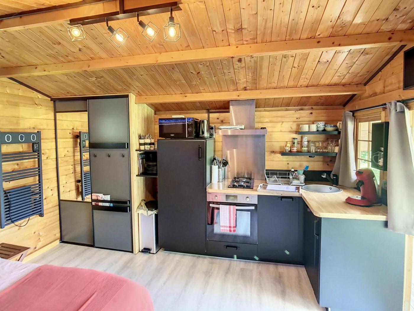 Chalet 1 Chambre. Boasting a private entrance, this air-conditioned chalet comes with a kitchen, 1 bedroom and 1 bathroom with a shower and a hairdryer. Guests will find a stovetop, a refrigerator, a dishwasher and kitchenware in the kitchen. The chalet also includes a barbecue. Featuring a terrace with lake views, this chalet also features a coffee machine and a flat-screen TV. The unit has 1 bed.
