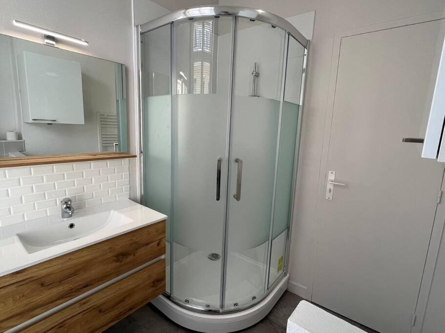 Appartement 1 Chambre. Guests can make meals in the kitchen that has a stovetop, a refrigerator, kitchenware and a microwave. The apartment features a tea and coffee maker, a dining area and heating. The unit has 1 bed.