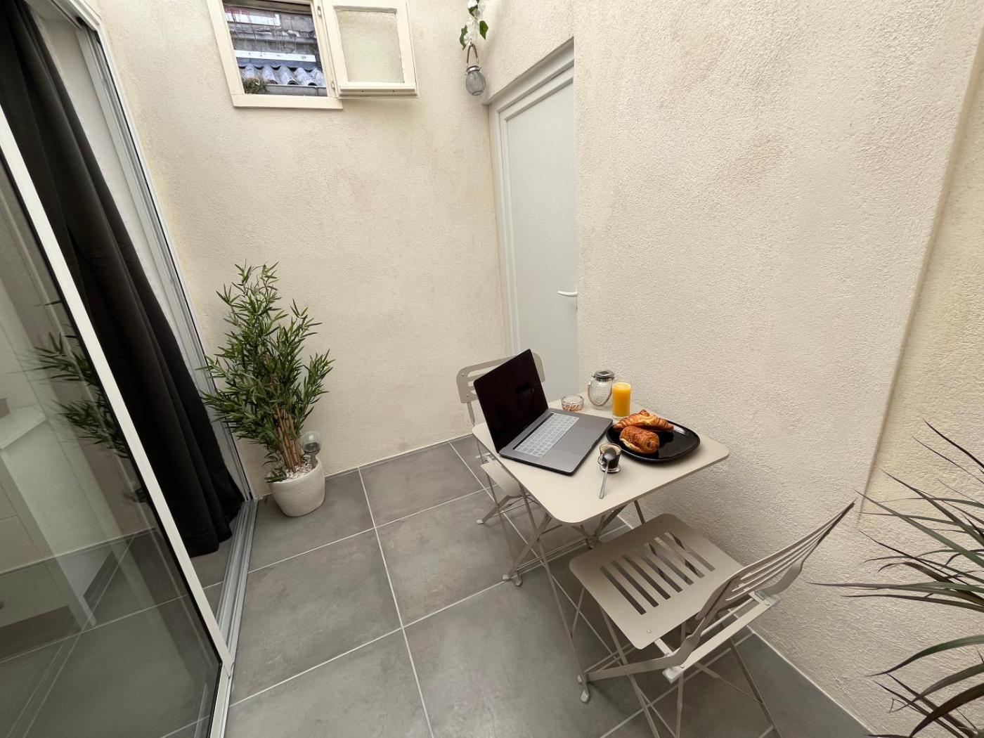 Appartement avec Terrasse. This apartment is comprised of 1 bedroom, kitchenette, a terrace and 1 bathroom with a shower. The well-equipped kitchenette features a stovetop, a refrigerator, kitchenware and a microwave. This apartment has a tea and coffee maker, flat-screen TV, ancourtyard view, as well as winechampagne for guests. The unit offers 1 bed. ;