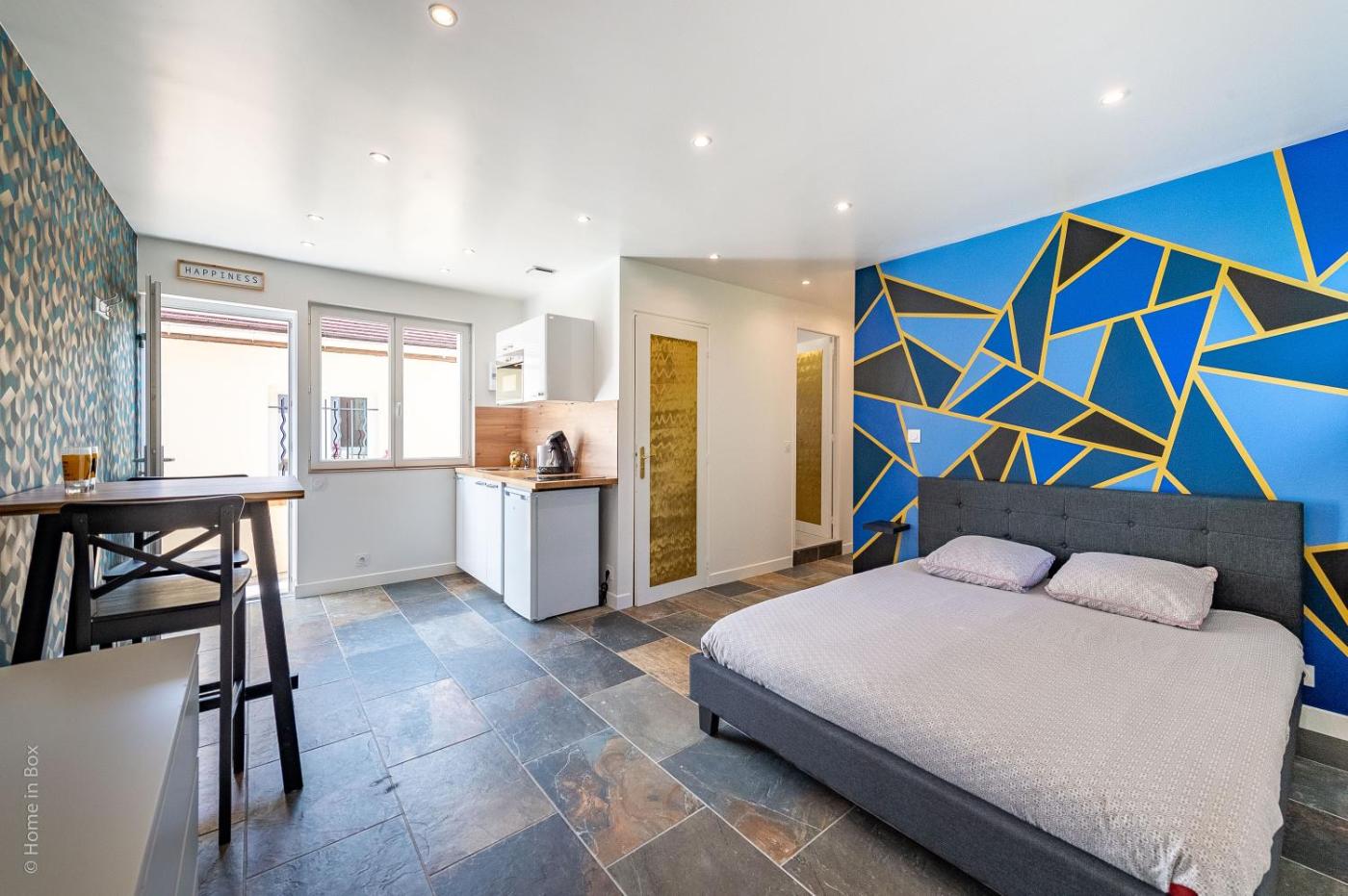 Appartement 1 Chambre. Bénéficiant d’une entrée privée, cet appartement se compose d’une cuisine, d’une chambre ainsi que d’une salle de bains pourvue d’une douche à litalienne et d’un sèche-cheveux. La cuisine entièrement équipée est pourvue de plaques de cuisson, d’un réfrigérateur, d’un micro-ondes et d’ustensiles. Offrant une vue sur une rue calme, cet appartement insonorisé dispose d’un coin repas, d’un plateaubouilloire et d’une télévision à écran plat avec des services de streaming. Ce logement comprend 1 lit. ;