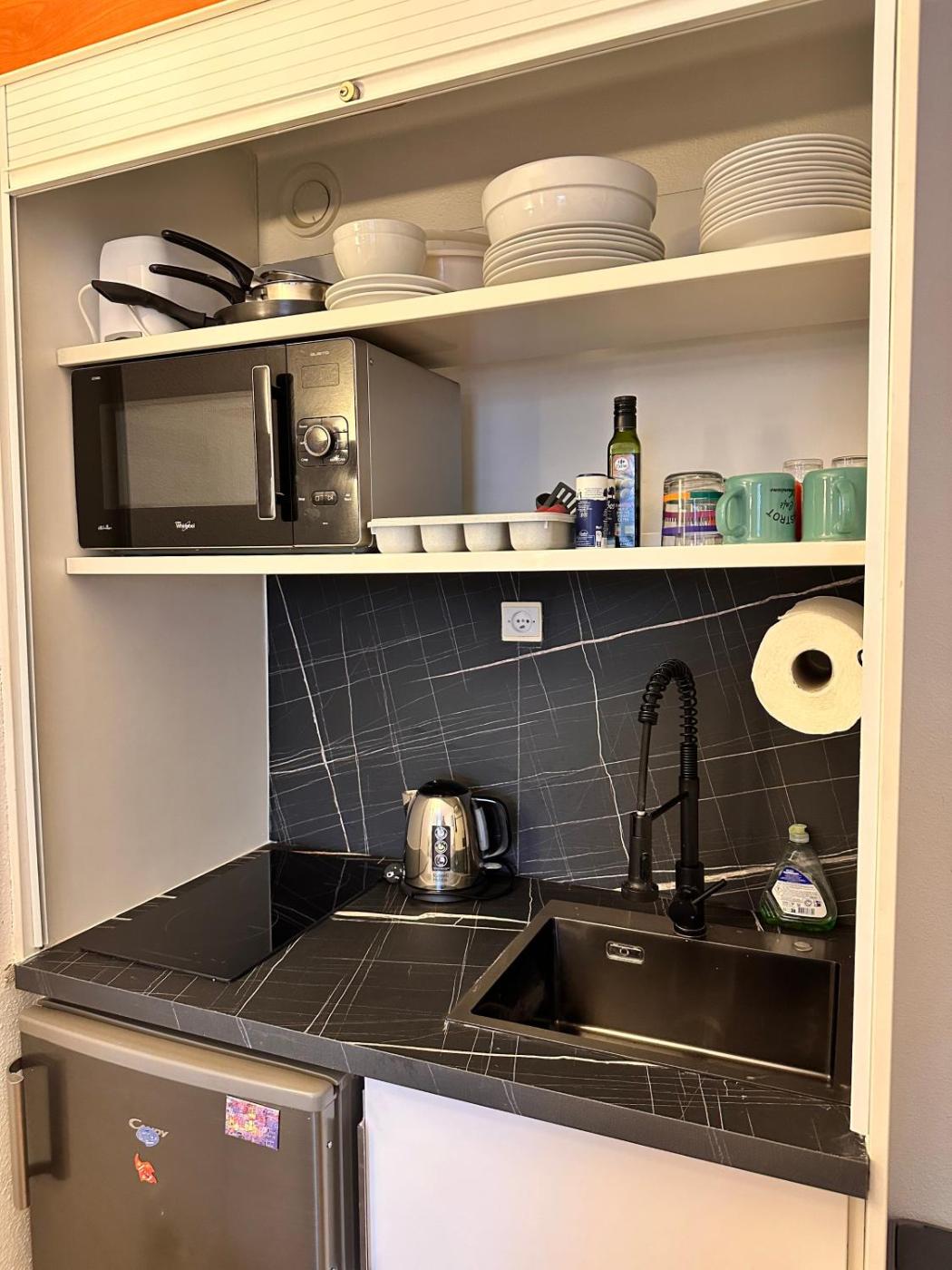Appartement 1 Chambre. Boasting a private entrance, this apartment also features 1 bedroom, a seating area and 1 bathroom with a shower and a hairdryer. A kitchen fitted with a refrigerator, a microwave and a toaster is available for cooking and storing food. This apartment has a tea and coffee maker, flat-screen TV with streaming services, a quiet street view, as well as chocolate for guests. The unit has 1 bed.