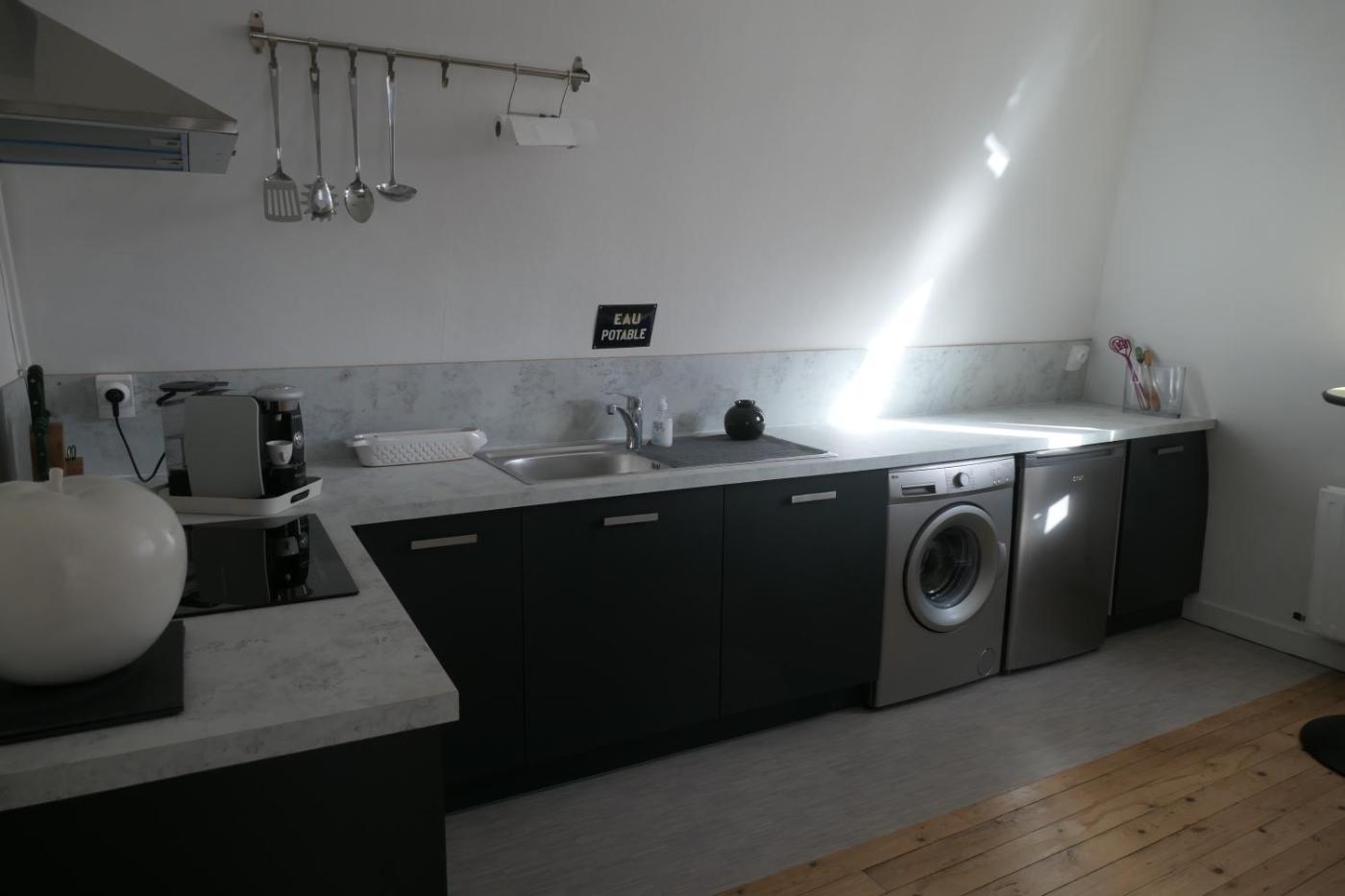 Appartement 2 Chambres. This apartment includes 1 living room, 2 separate bedrooms and 1 bathroom with a shower and a hairdryer. In the well-equipped kitchen, guests will find a stovetop, a refrigerator, a dishwasher and kitchenware. The apartment has parquet floors, a seating area with a flat-screen TV, a washing machine, a tea and coffee maker as well as a quiet street view. The unit has 2 beds.