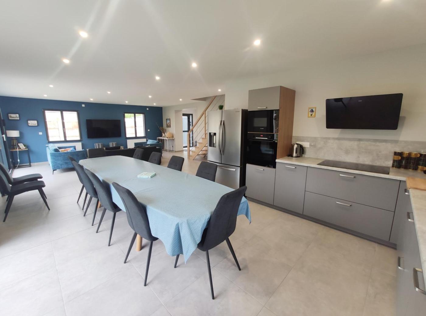 Maison 5 Chambres. Cette maison de vacances spacieuse comprend une entrée privée, un salon, 5 chambres séparées et 4 salles de bains avec une douche à litalienne. Vous pourrez préparer vos repas dans la cuisine équipée de plaques de cuisson, dun réfrigérateur, dun lave-vaisselle et dustensiles de cuisine. Cette maison de vacances dispose dune terrasse avec vue sur le jardin, dun lave-linge et dune télévision à écran plat. Ce logement comprend 10 lits.