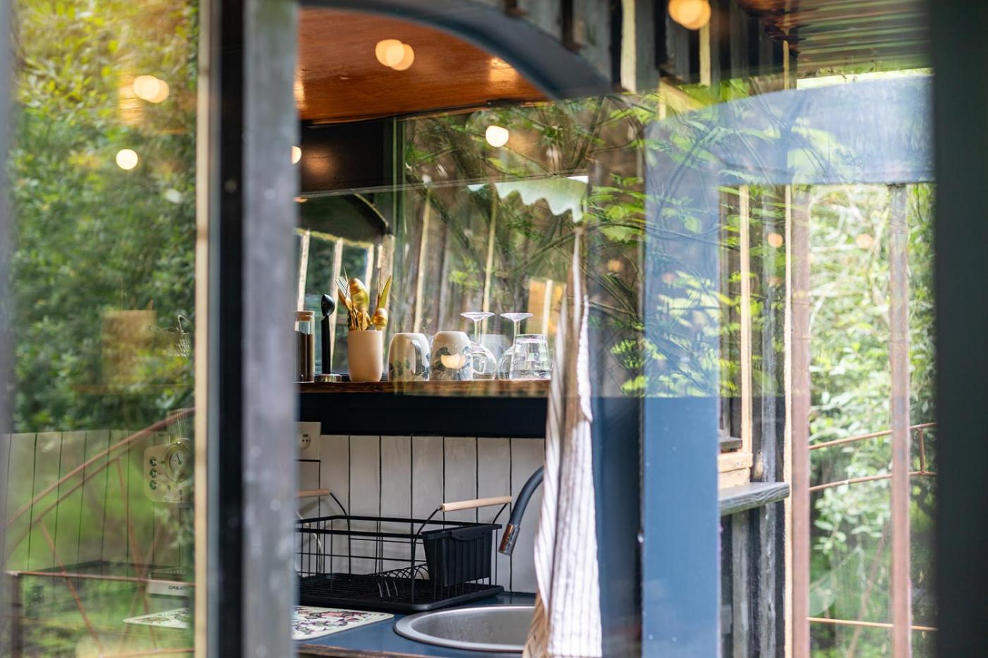 Roulotte. No wifi in the room, a private terrace, this wooden caravan features a dining area and a private bathroom. Guests have access to the private kitchen in the roomwithe the minimum to kitchen ;
