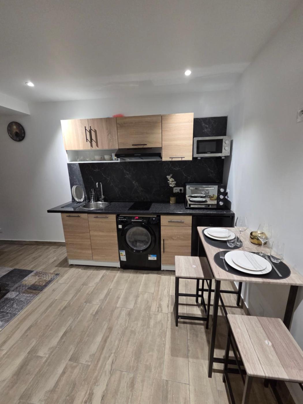 Appartement - Rez-de-Chaussée. This apartment features 1 living room, 1 separate bedroom and 1 bathroom with a shower and free toiletries. The apartments kitchen is available for cooking and storing food. The apartment has carpeted floors, a seating area with a flat-screen TV, a washing machine, a dining area as well as garden views. The unit has 2 beds.