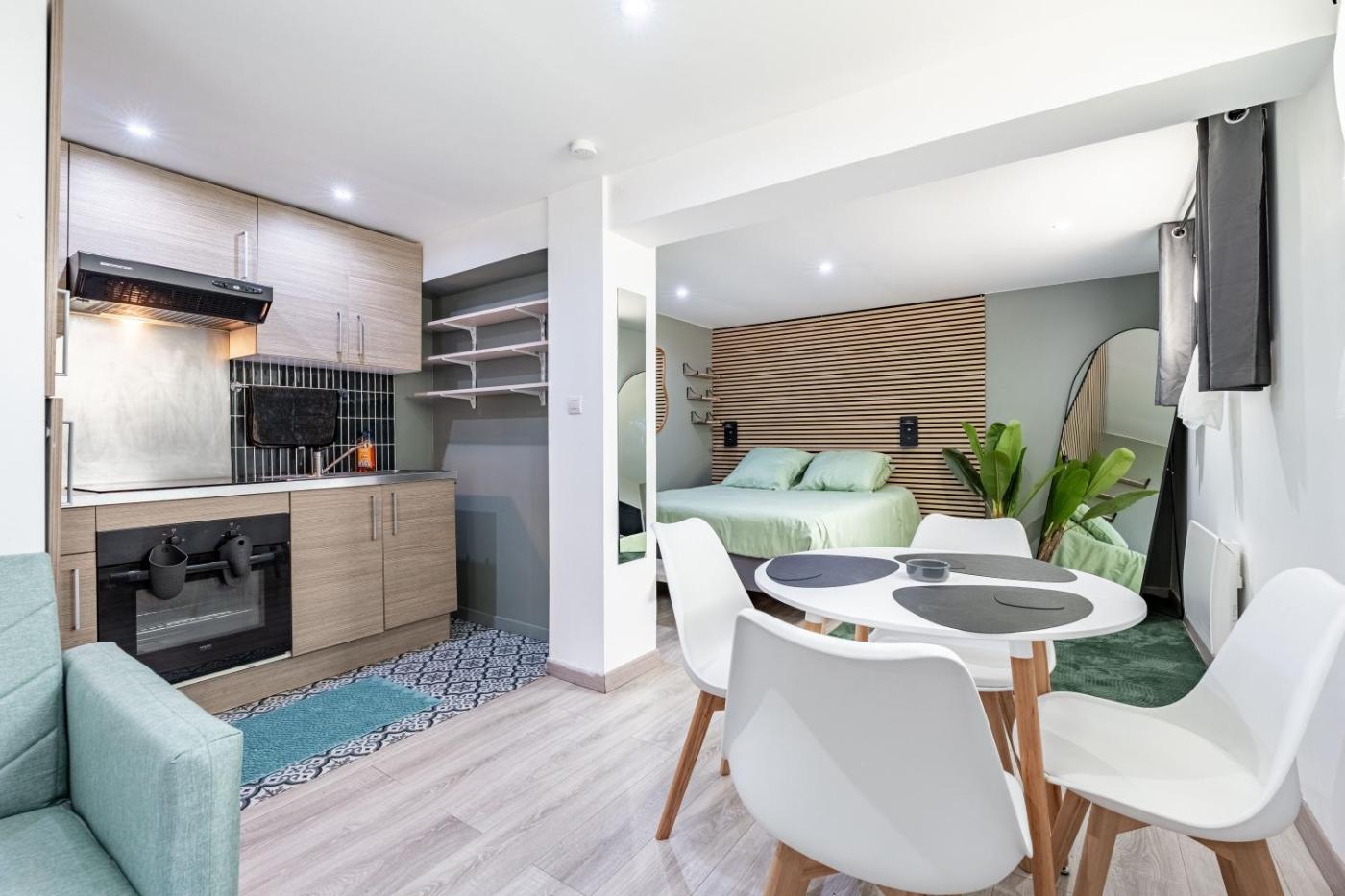 Appartement 1 Chambre. The apartment features 1 bedroom and 1 bathroom with a bath or a shower and free toiletries. Guests can make meals in the kitchen that comes with a refrigerator, a dishwasher, kitchenware and a microwave. The apartment provides a coffee machine, a dining area, a sofa, heating and a flat-screen TV with streaming services. The unit offers 2 beds.