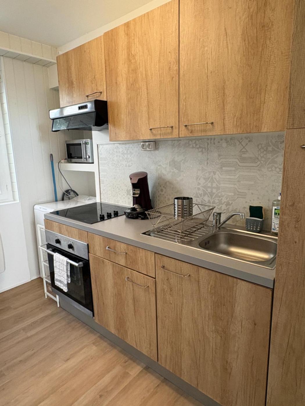 Studio avec Canapé-Lit. The studio features a private bathroom, a washing machine, a tea and coffee maker, as well as a seating area with a flat-screen TV. The fully equipped kitchen has a stovetop, a refrigerator, kitchenware and an oven. The studio provides a dining area, a wardrobe, a sofa, heating, as well as a TV. The unit offers 1 bed.