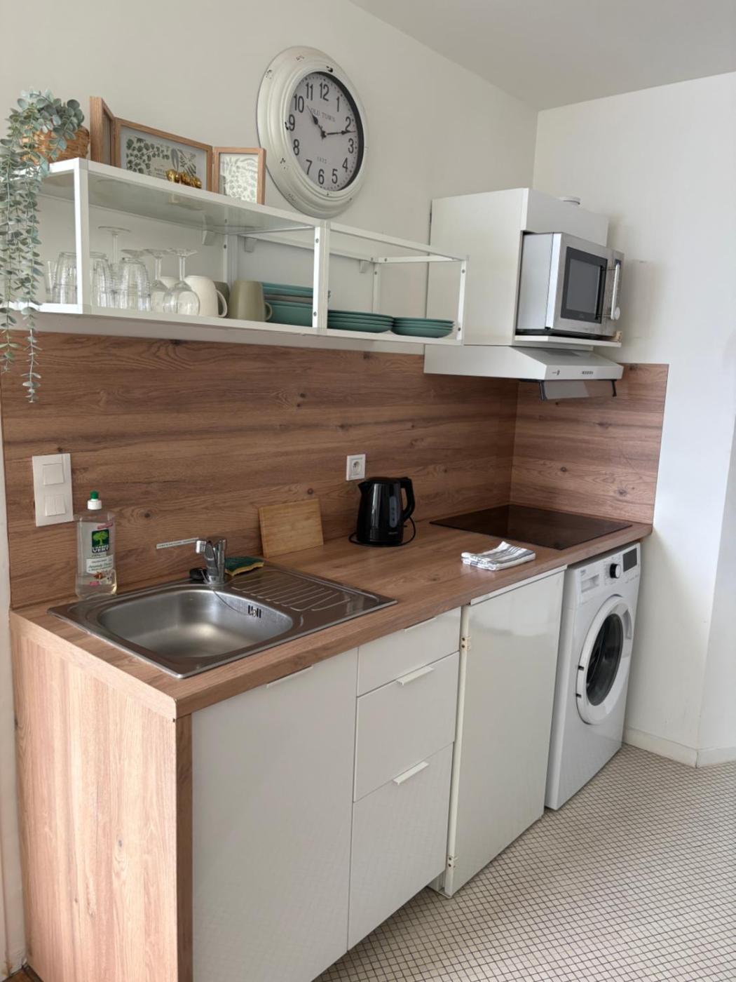 Appartement 1 Chambre. The apartment features 1 bedroom and 1 bathroom with a walk-in shower and free toiletries. The well-equipped kitchen has a stovetop, a refrigerator, kitchenware and a microwave. The apartment offers a washing machine, soundproof walls, a tea and coffee maker, a flat-screen TV, as well as sea views. The unit offers 1 bed.