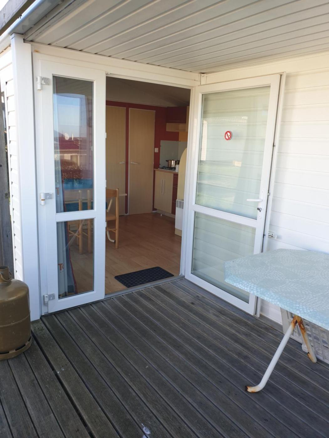 Mobile Home. This mobile home includes 1 bedroom, a seating area and 1 bathroom with a shower. Boasting an outdoor dining area, this mobile home also offers a dining area, a wardrobe and a flat-screen TV. The unit has 4 beds.
