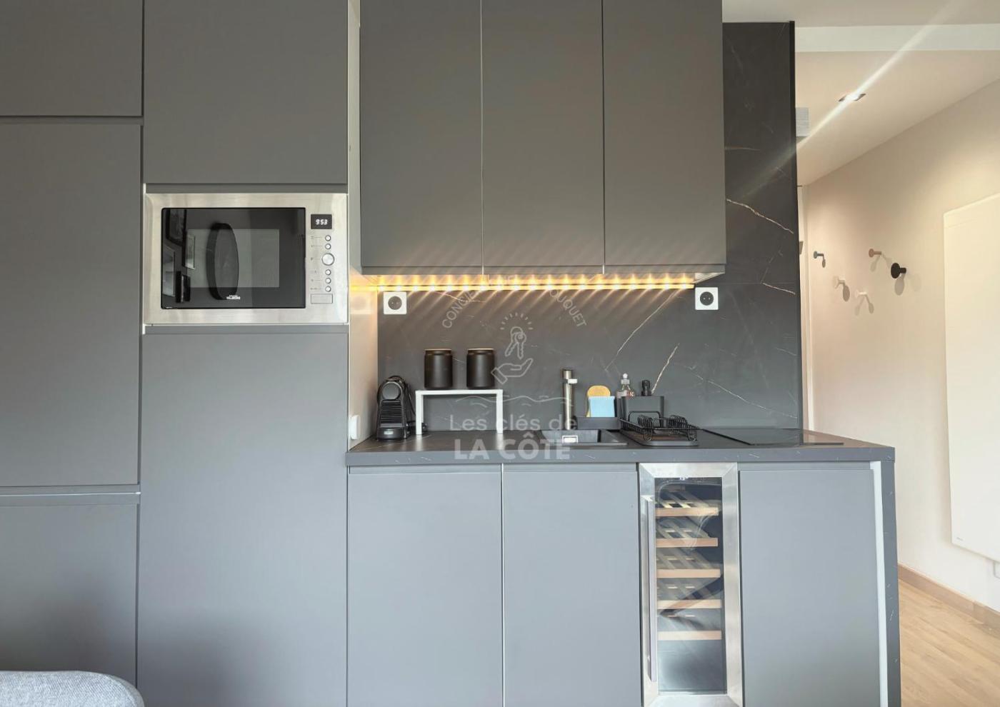Appartement 1 Chambre. This apartment features 1 living room, 1 separate bedroom and 1 bathroom with a shower and a hairdryer. In the kitchen, guests will find a stovetop, a refrigerator, a dishwasher and kitchenware. This apartment has a washing machine, flat-screen TV with streaming services, city views, as well as chocolate for guests. The unit has 2 beds.