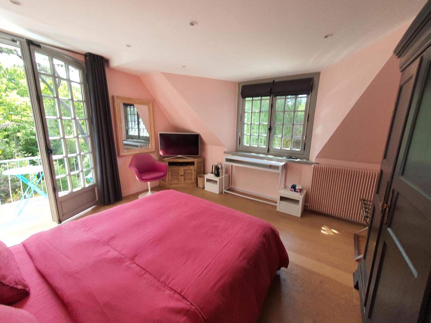 Chambre Double avec Balcon. Cette chambre double dispose d’un balcon et dun peignoir. Le logement dispose de toilettes privées situées dans le couloir. ;