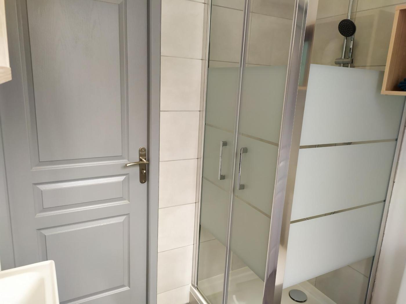 Chambre Double Familiale. The family room features a private bathroom, a washing machine, a tea and coffee maker, as well as a seating area with a TV. The fully equipped kitchen has a stovetop, a refrigerator, a dishwasher and kitchenware. The family room offers heating. The unit offers 3 beds.