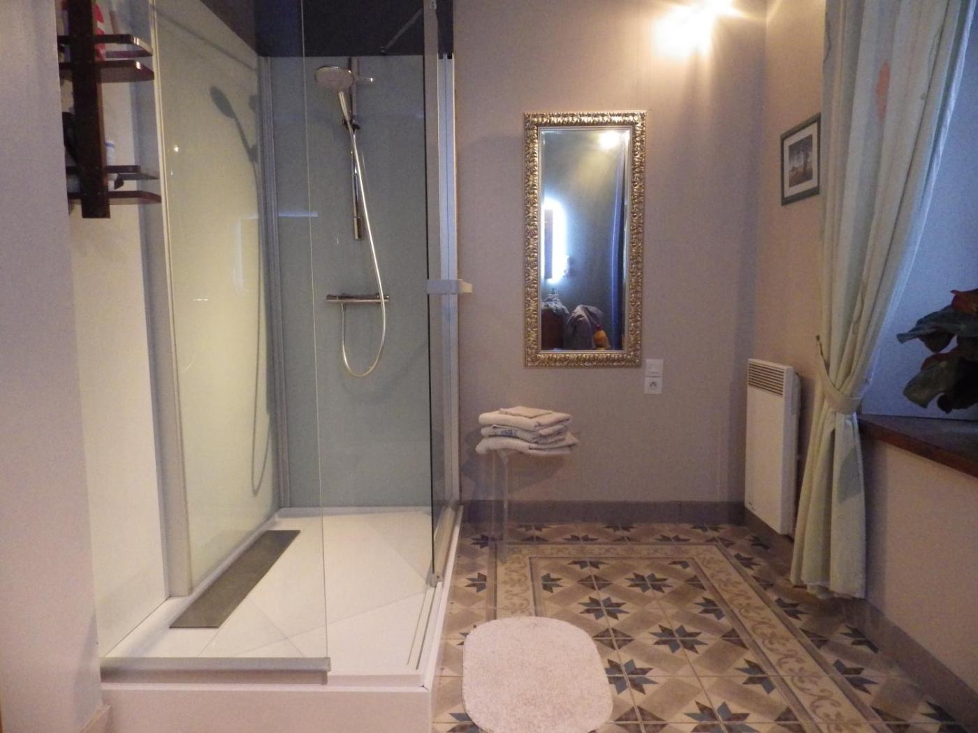 Chambre Familiale avec Salle de Bains Privative. The family room offers a private entrance, soundproof walls, a terrace with garden views as well as a private bathroom boasting a shower. The unit has 3 beds. ;