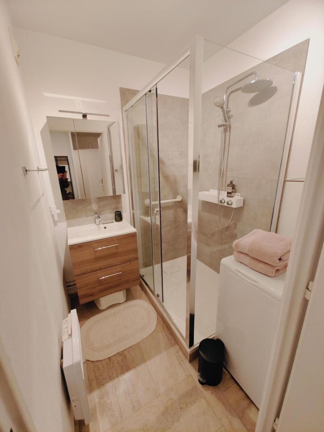 Appartement 2 Chambres. This spacious apartment comes with 1 living room, 2 separate bedrooms and 1 bathroom with a shower and a hairdryer. Guests can make meals in the kitchen that features a stovetop, a refrigerator, a dishwasher and kitchenware. The apartment has parquet floors, a seating area with a flat-screen TV, a washing machine, a tea and coffee maker, as well as a dining area. The unit has 3 beds.