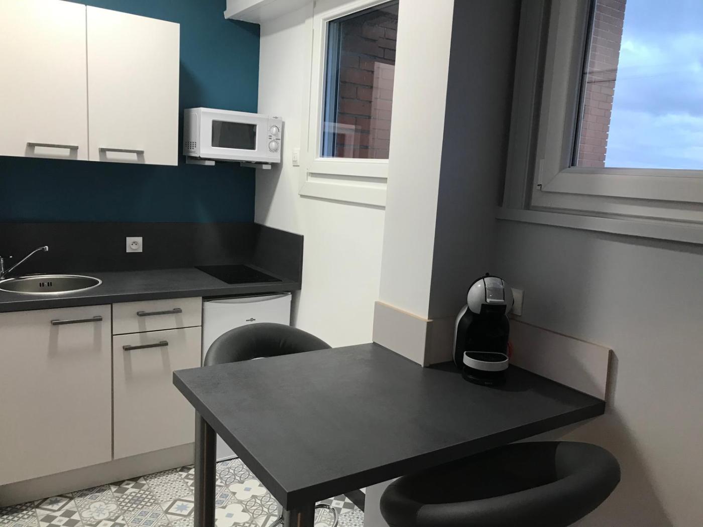 Studio. The studio has a private bathroom, soundproof walls, a tea and coffee maker, as well as a seating area with a flat-screen TV. A kitchen fitted with a refrigerator, a microwave and a toaster is available for cooking and storing food. The studio features a dining area, a wardrobe, heating, a TV, as well as city views. The unit has 1 bed.