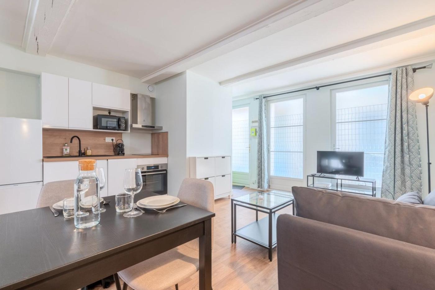 Appartement 1 Chambre. This apartment comprises 1 bedroom, a kitchen and 1 bathroom with a shower and a hairdryer. Meals can be prepared in the kitchen, which comes with a refrigerator, a dishwasher, kitchenware and an oven. The apartment provides a washing machine, a coffee machine, heating and a TV. The unit offers 1 bed.