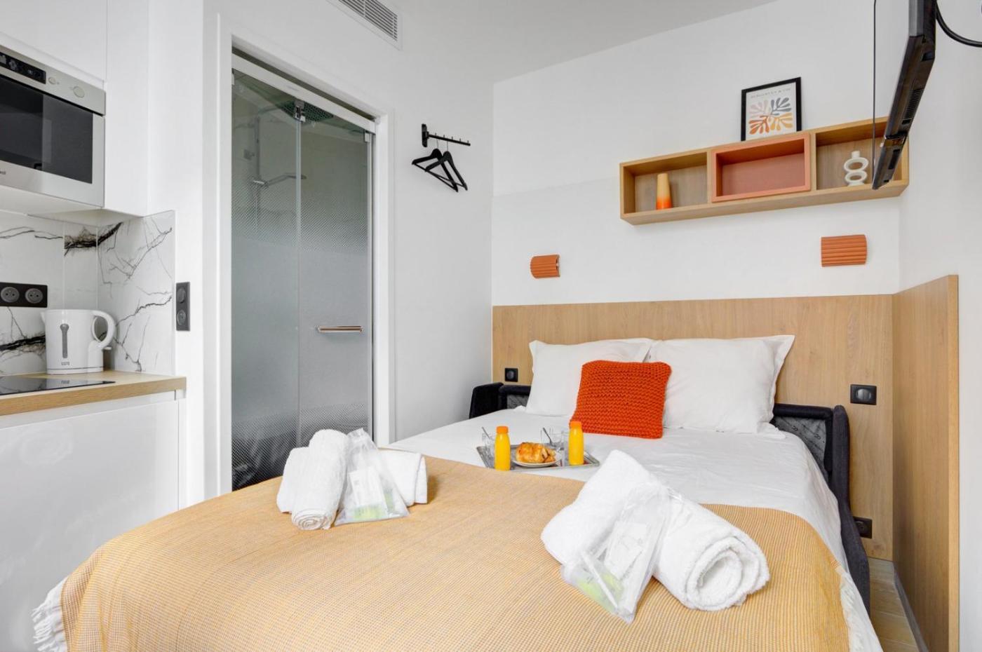 Appartement 1 Chambre. In the kitchen, guests will find a refrigerator, a microwave, a toaster and an electric kettle. The apartment provides air conditioning, a washing machine, as well as a private bathroom featuring a shower and a hairdryer. The unit offers 1 bed.