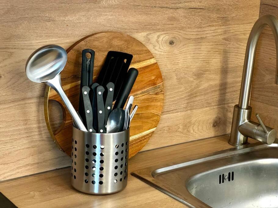 Cet appartement comporte 1 chambre, une cuisine avec un réfrigérateur et un micro-ondes, ainsi que 1 salle de bains avec une douche, un sèche-cheveux et un lave-linge. Une télévision à écran plat est à disposition.