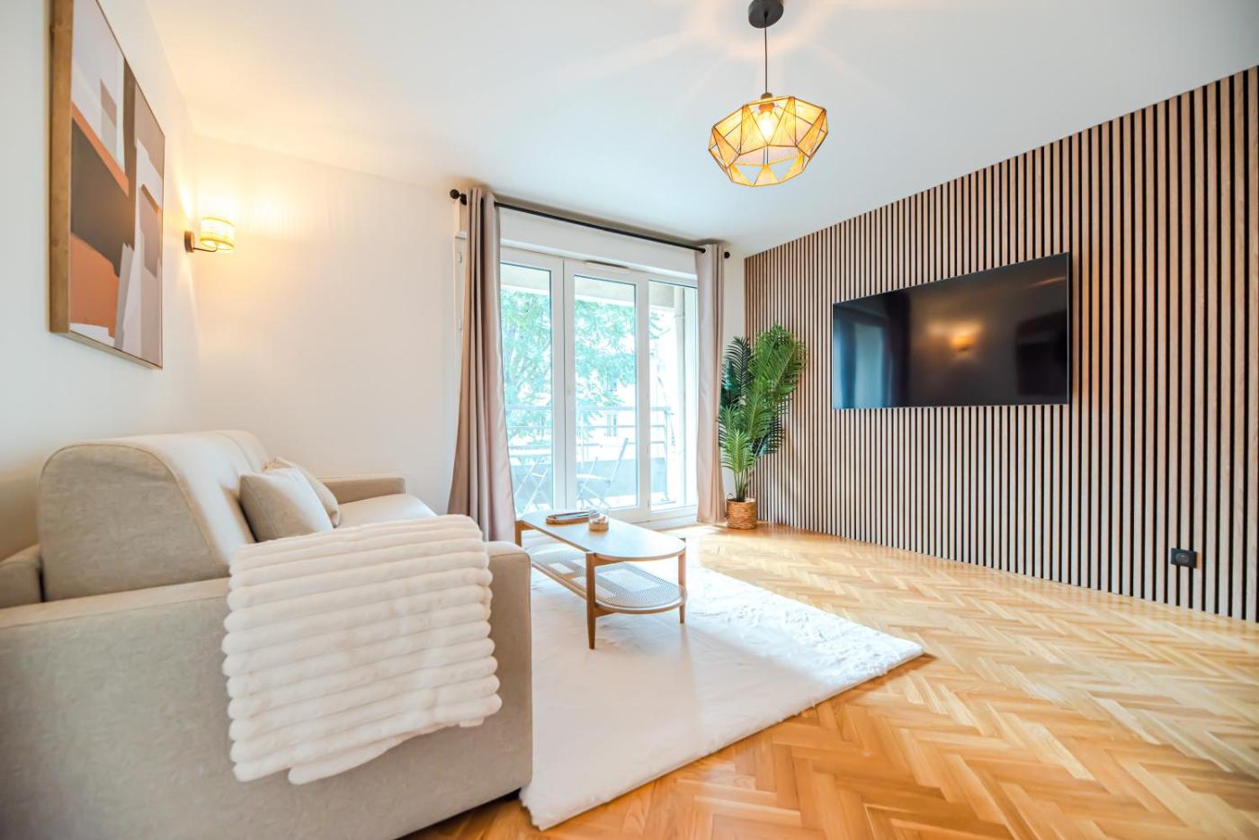 Appartement 1 Chambre avec Balcon. Boasting a private entrance, this apartment includes 1 living room, 1 separate bedroom and 1 bathroom with a shower and a hairdryer. The well-equipped kitchen has a stovetop, a refrigerator, kitchenware and an oven. This apartment features a tea and coffee maker, a seating area, a flat-screen TV and a balcony. The unit has 2 beds.