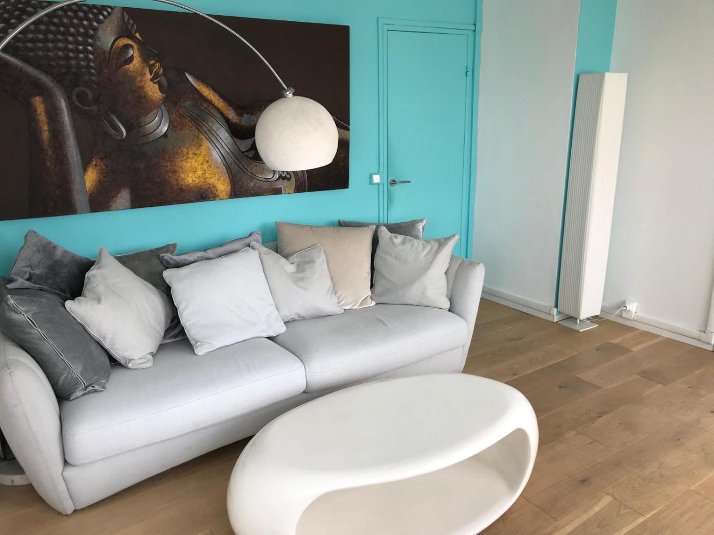 Appartement 2 Chambres. Guests can make meals in the kitchen that is equipped with a stovetop, a refrigerator, a dishwasher and kitchenware. The spacious apartment provides a flat-screen TV with streaming services, a washing machine, a private entrance, a tea and coffee maker as well as city views. The unit offers 2 beds.