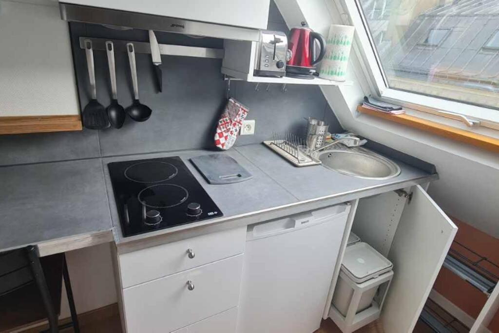 Appartement 1 Chambre. This apartment features 1 living room, 1 separate bedroom and 1 bathroom with a shower and free toiletries. The fully equipped kitchen features a stovetop, a refrigerator, kitchenware and a microwave. The apartment has parquet floors, a seating area with a flat-screen TV, a washing machine, a tea and coffee maker as well as city views. The unit has 2 beds.