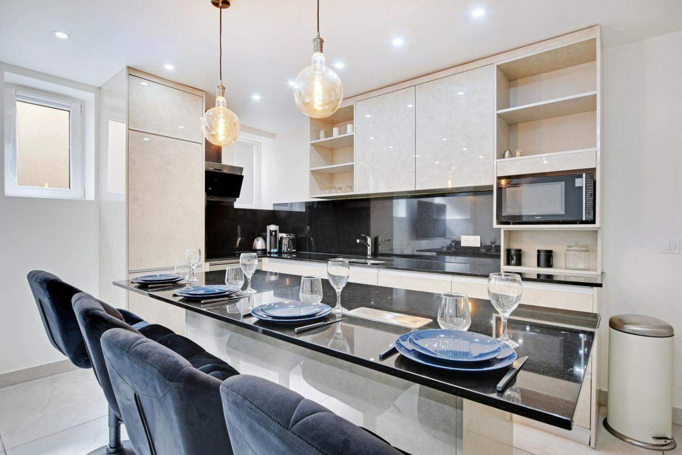Appartement 1 Chambre. The apartment has 1 bedroom, 1 bathroom and a kitchen. Meals can be prepared in the kitchen, which has a stovetop, a refrigerator, a dishwasher and kitchenware. The apartment offers a washing machine, a coffee machine, tumble dryer, heating and a flat-screen TV. The unit has 2 beds.