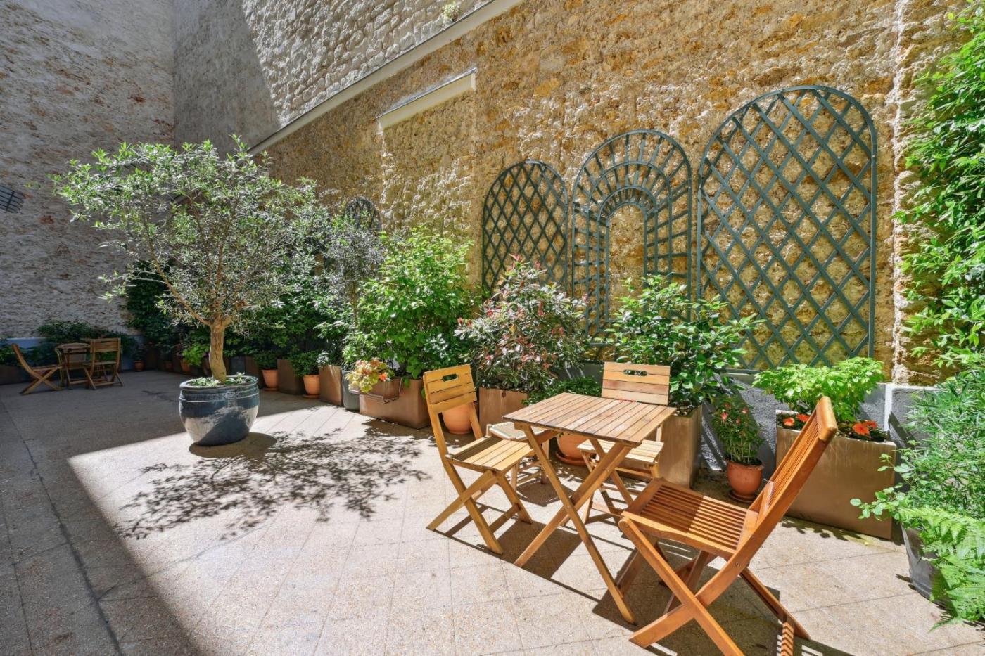 Trocadéro Apartment – One-Bedroom with Terrace. This apartment includes 1 living room, 1 separate bedroom and 1 bathroom with a walk-in shower and free toiletries. In the fully equipped kitchenette, guests will find a stovetop, a refrigerator, kitchenware and a microwave. The air-conditioned apartment offers a flat-screen TV with streaming services, a washing machine, soundproof walls, a tea and coffee maker as well as garden views. The unit has 2 beds.