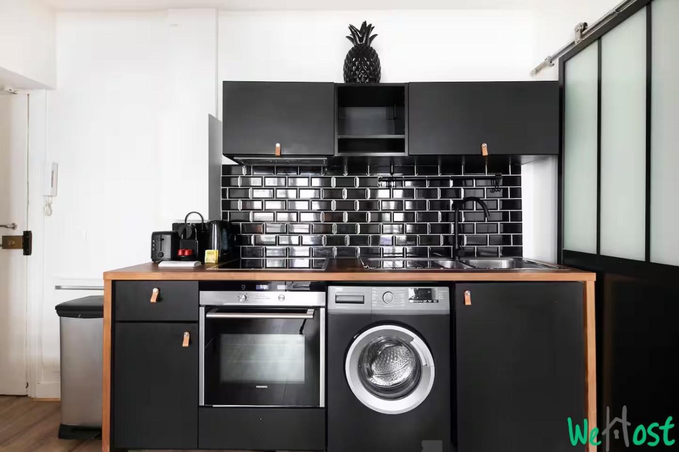 Appartement 1 Chambre. The well-equipped kitchen has a stovetop, a refrigerator, a dishwasher and kitchenware. The apartment features a washing machine, a coffee machine, a seating area, a dining area, as well as a flat-screen TV. The unit has 2 beds.