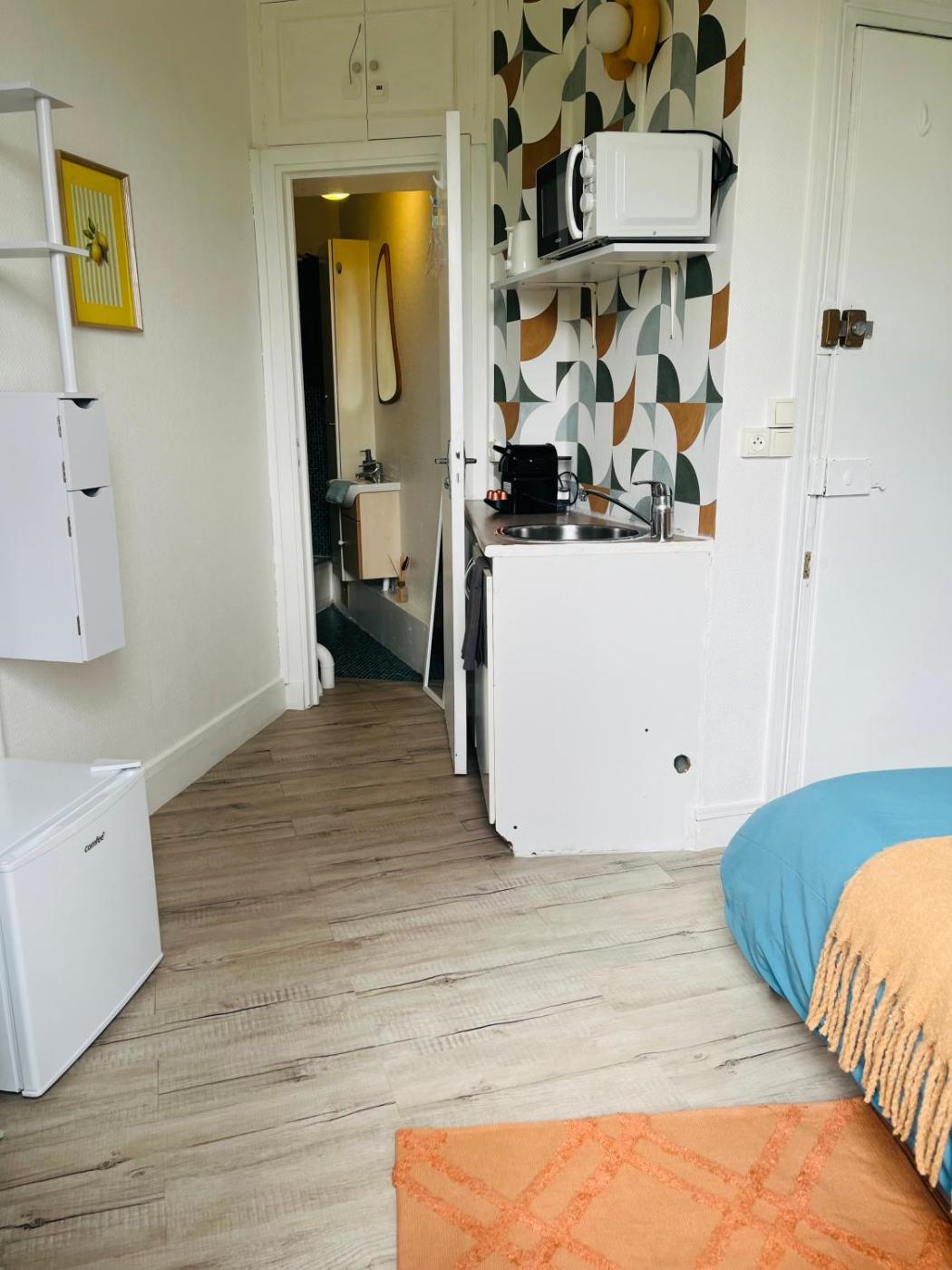 Chambre Double avec Salle de Bains Privative. Offering free toiletries, this double room includes a private bathroom with a shower and a hairdryer. In the well-fitted kitchenette, guests will find a refrigerator, kitchenware, a microwave and a toaster. The double room offers a flat-screen TV with streaming services, a private entrance, soundproof walls, a tea and coffee maker as well as city views. The unit offers 1 bed.