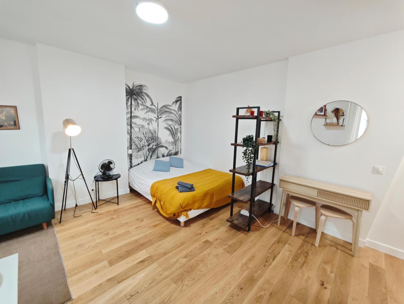 Appartement 1 Chambre. Boasting a private entrance, this air-conditioned apartment features a kitchen, 1 bedroom and 1 bathroom with a shower and a hairdryer. In the well-equipped kitchen, guests will find a stovetop, a refrigerator, kitchenware and a microwave. The unit has parquet floors, a seating area, a washing machine, a tea and coffee maker, as well as a patio. The unit has 2 beds.