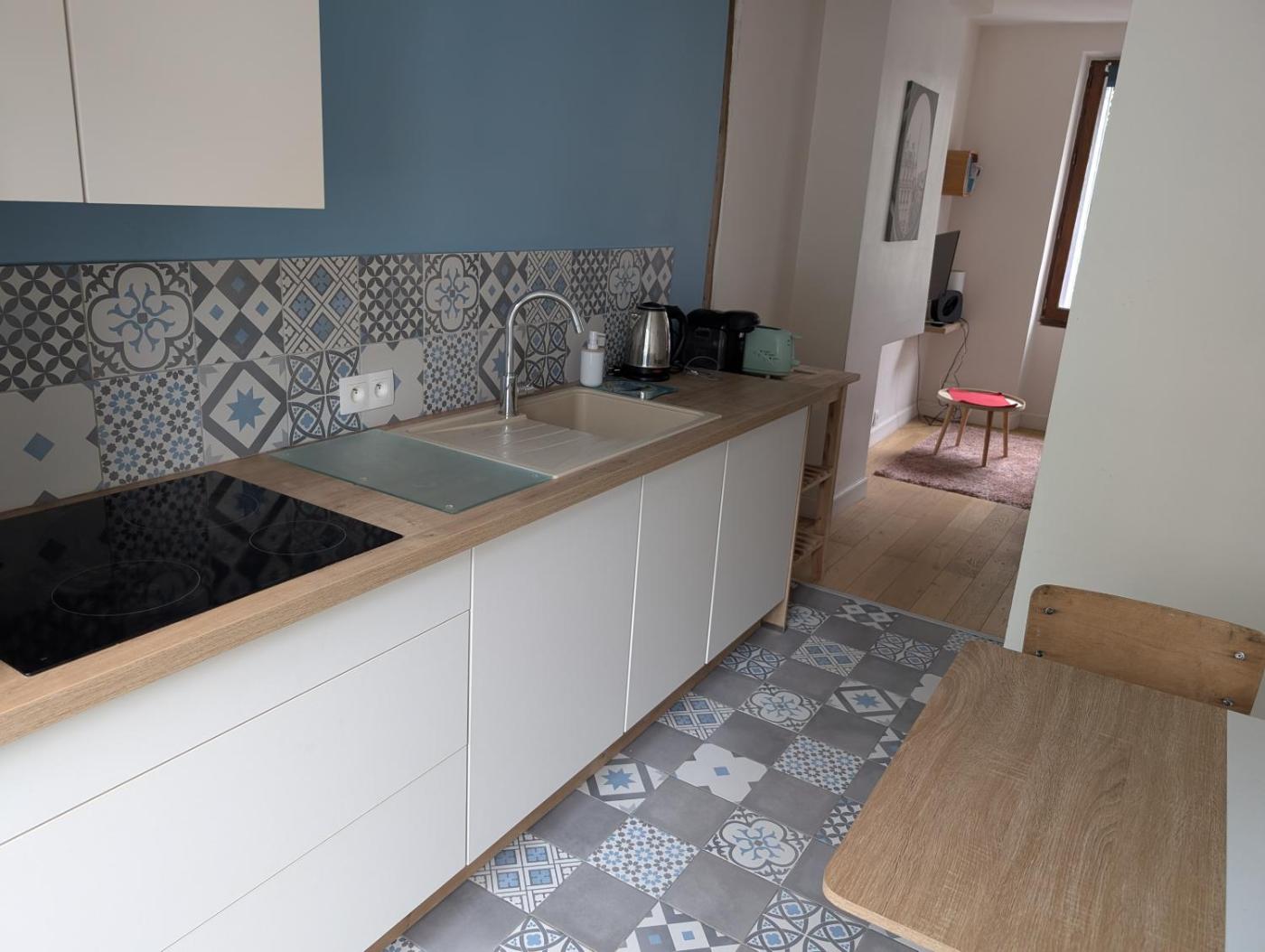 Appartement 1 Chambre. The apartment has 1 bedroom and 1 bathroom with a shower and free toiletries. In the well-equipped kitchen, guests will find a stovetop, a refrigerator, kitchenware and an oven. The apartment offers a washing machine, a tea and coffee maker, a seating area, a flat-screen TV with cable channels, as well as ancourtyard view. The unit has 1 bed.