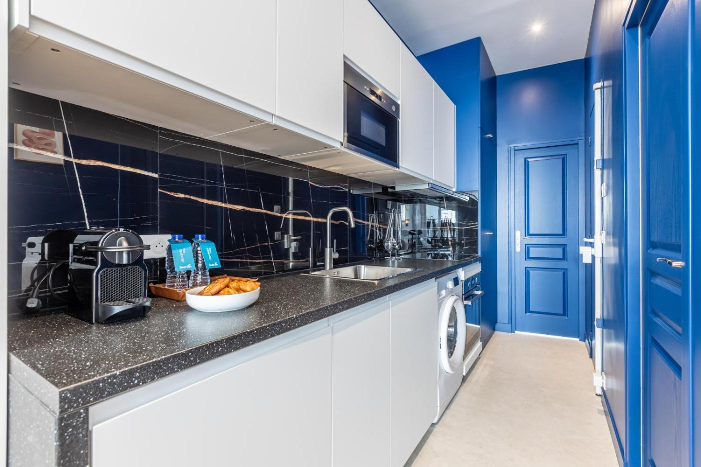 Studio. Ce studio comprend une salle de bains privative avec douche et sèche-cheveux. Des chaussons et des articles de toilette gratuits sont fournis. La kitchenette bien équipée est munie d’un réfrigérateur, d’un lave-vaisselle, d’un micro-ondes et d’ustensiles de cuisine. Ce studio dispose d’un lave-linge, d’une entrée privée, d’une machine à café, d’un canapé et d’une télévision à écran plat. Ce logement comporte 1 lit. ;