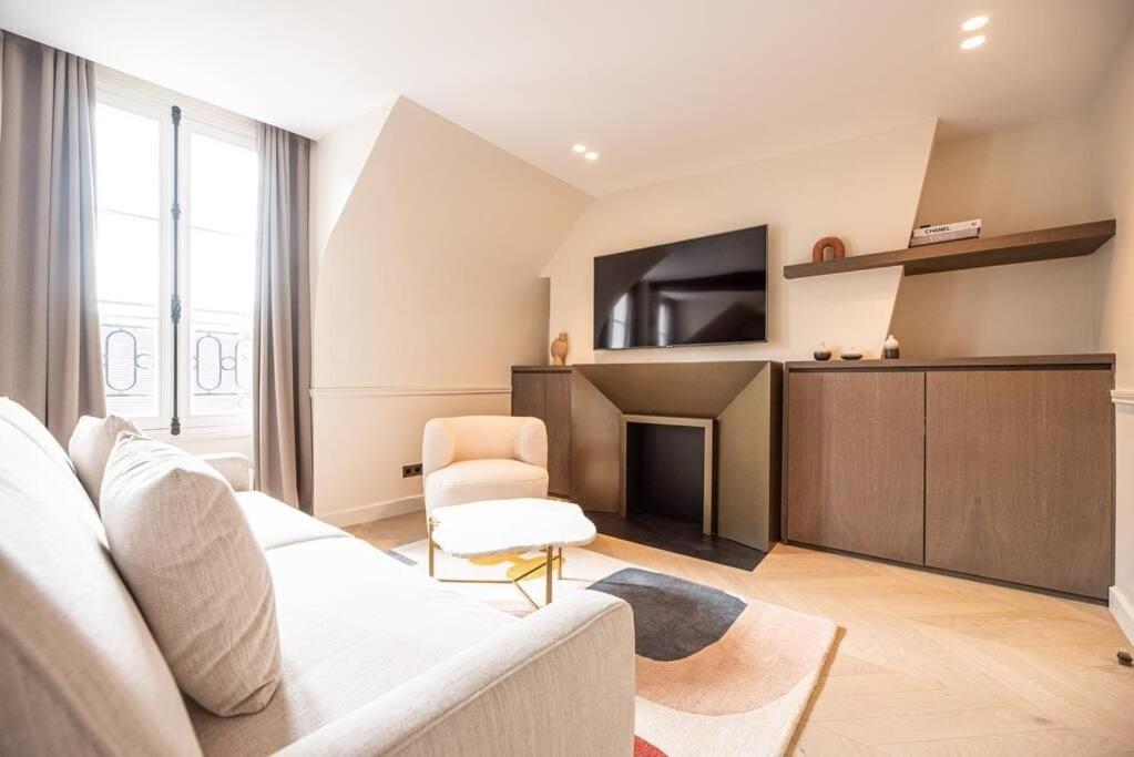 Cet appartement comporte 1 chambre, une télévision à écran plat, la climatisation et un salon.