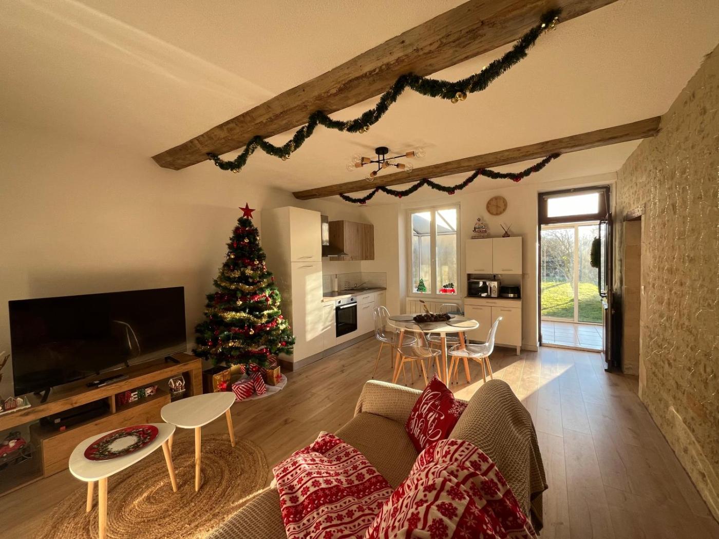 Maison 1 Chambre. Boasting a private entrance, this holiday home includes 1 living room, 1 separate bedroom and 1 bathroom with a walk-in shower and a hairdryer. Guests will find a stovetop, a refrigerator, kitchenware and an oven in the well-equipped kitchen. The holiday home also features a barbecue. The holiday home has tiled floors, a seating area with a flat-screen TV, a washing machine, a tea and coffee maker as well as garden views. The unit has 2 beds.
