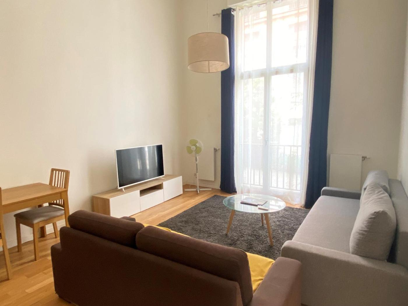 Cet appartement se compose de 1 chambre, dun salon, dune cuisine entièrement équipée avec un réfrigérateur et une machine à café, ainsi que de 1 salle de bains avec une baignoire ou une douche et un sèche-cheveux. Des serviettes et du linge de lit sont à votre disposition.