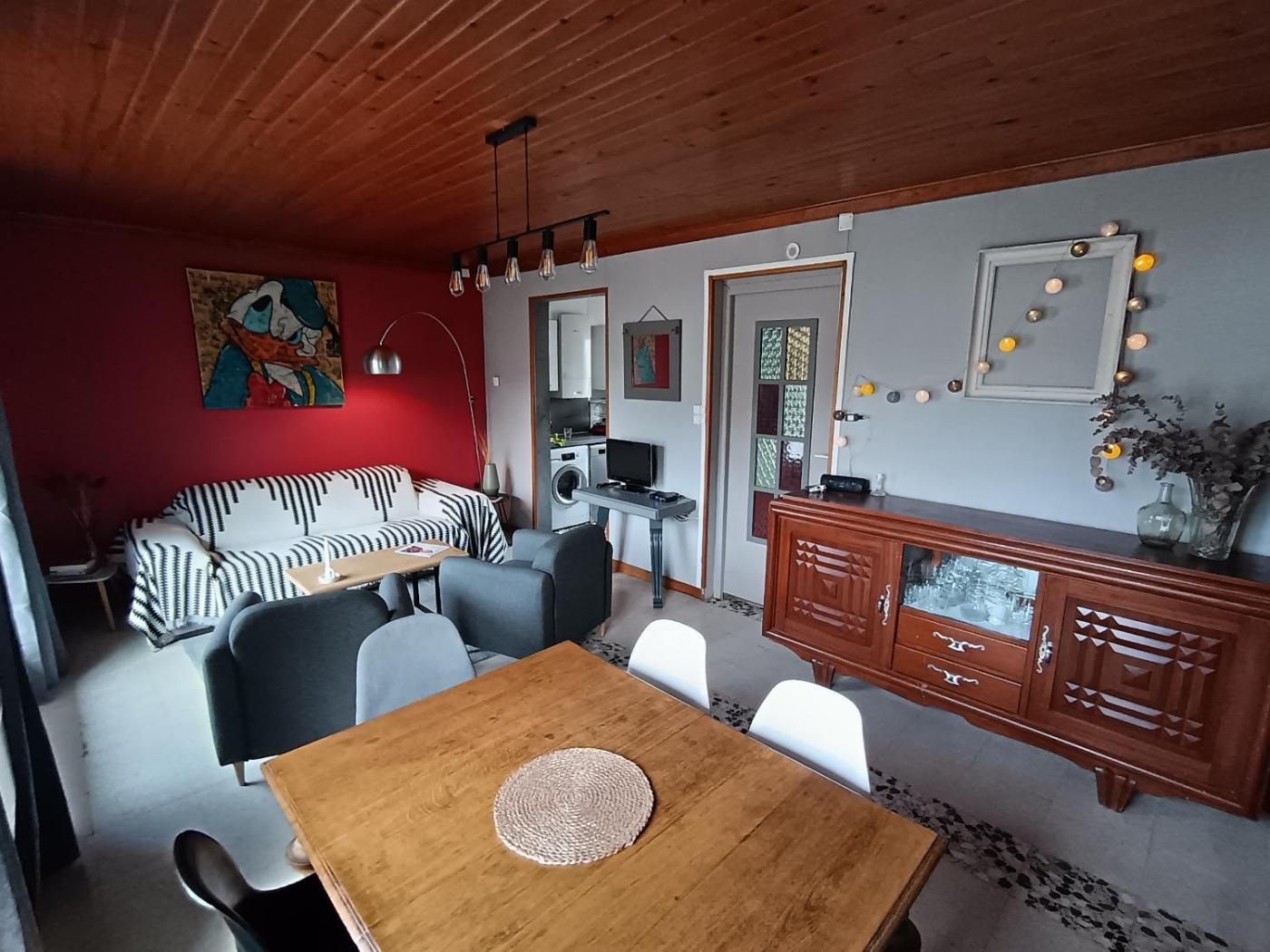 Maison 2 Chambres. Featuring 2 bedrooms, this holiday home offers 1 bathroom with a shower, a seating area and terraceyou can relax. Guests will find a stovetop, a refrigerator, a dishwasher and kitchenware in the fully equipped kitchen. The holiday home also offers a barbecue. The holiday home provides a washing machine, a coffee machine, a wardrobe, a flat-screen TV, as well as ancourtyard view. The unit has 4 beds.