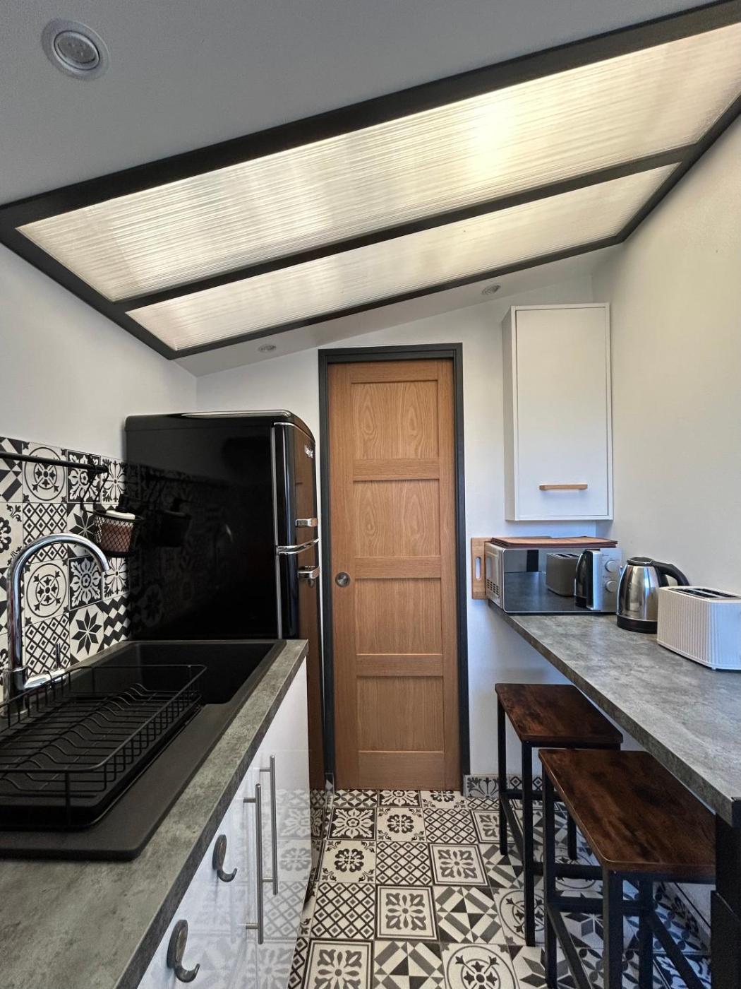 Disposant d’une terrasse et offrant une vue sur le jardin, cette maison de vacances possède 1 chambre, un salon, une télévision à écran plat, une cuisine équipée avec un réfrigérateur et un four, ainsi que 1 salle de bains avec une douche. Des serviettes et du linge de lit sont à votre disposition.