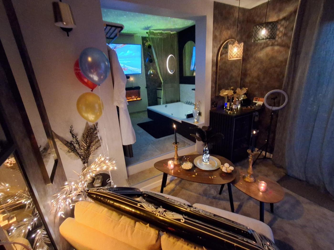 Chambre Lit King-Size avec Baignoire Spa. Guests will have a special experience as this double room provides a hot tub, a spa bath and a fireplace. The spacious double room offers a private entrance, soundproof walls, a terrace with garden views as well as a private bathroom featuring a walk-in shower. The unit offers 1 bed.