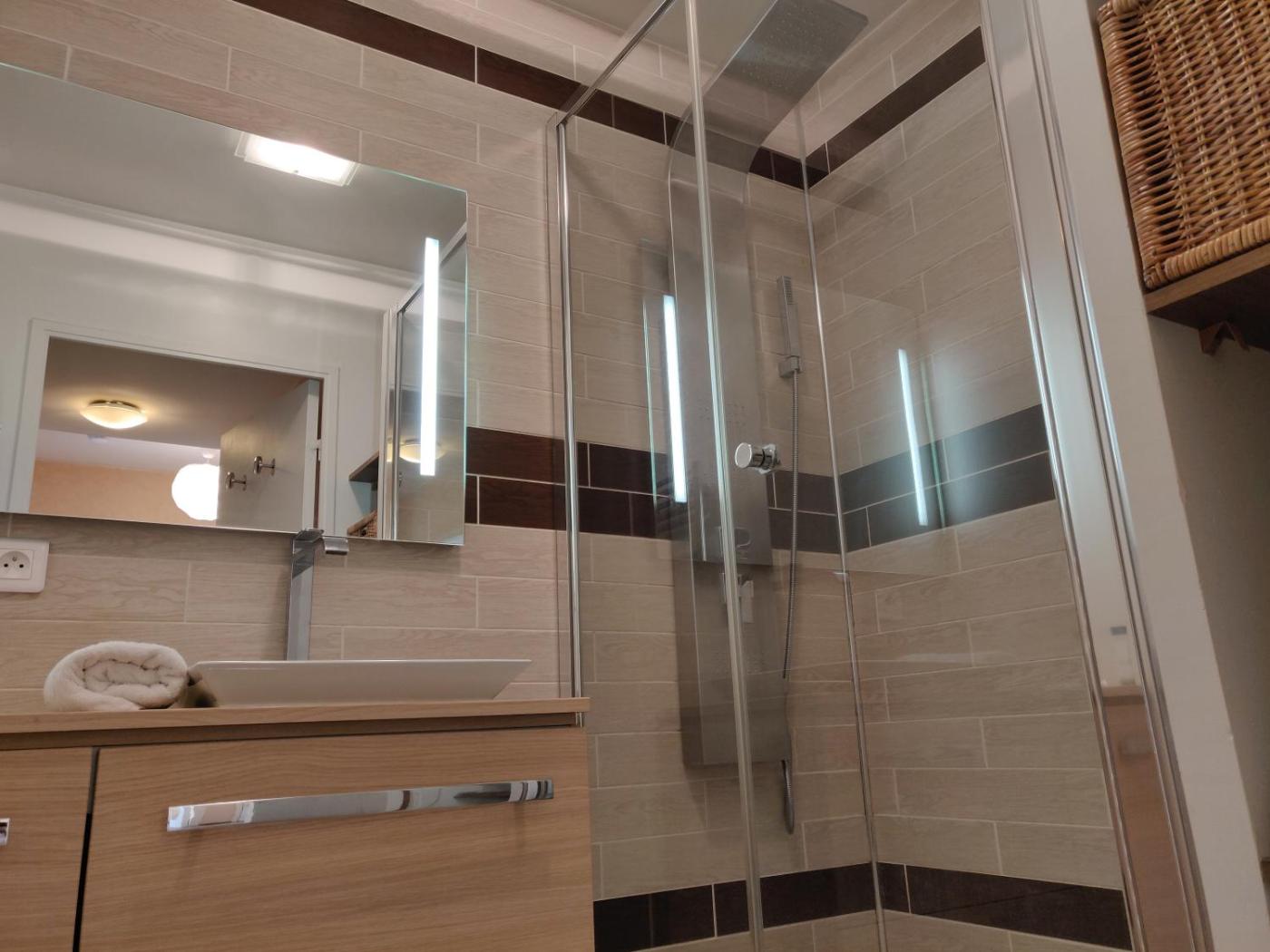 Appartement 1 Chambre. This apartment consists of 1 living room, 1 separate bedroom and 1 bathroom with a shower and free toiletries. Guests can make meals in the kitchen that is equipped with a stovetop, a refrigerator, a dishwasher and kitchenware. The apartment features parquet floors, a seating area with a flat-screen TV, a washing machine, a tea and coffee maker as well as city views. The unit offers 1 bed.