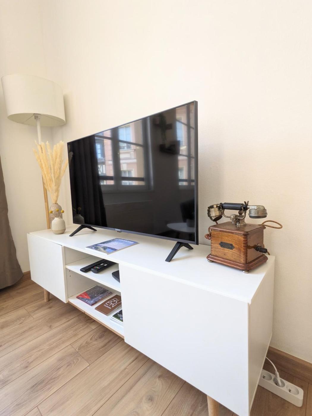 Appartement - Vue sur Ville. This apartment is comprised of 1 living room, 1 separate bedroom and 1 bathroom with a shower and free toiletries. Guests can make meals in the kitchen that comes with a stovetop, a refrigerator, a dishwasher and kitchenware. The apartment offers a flat-screen TV with cable channels, a washing machine, a coffee machine, a seating area as well as city views. The unit offers 1 bed.