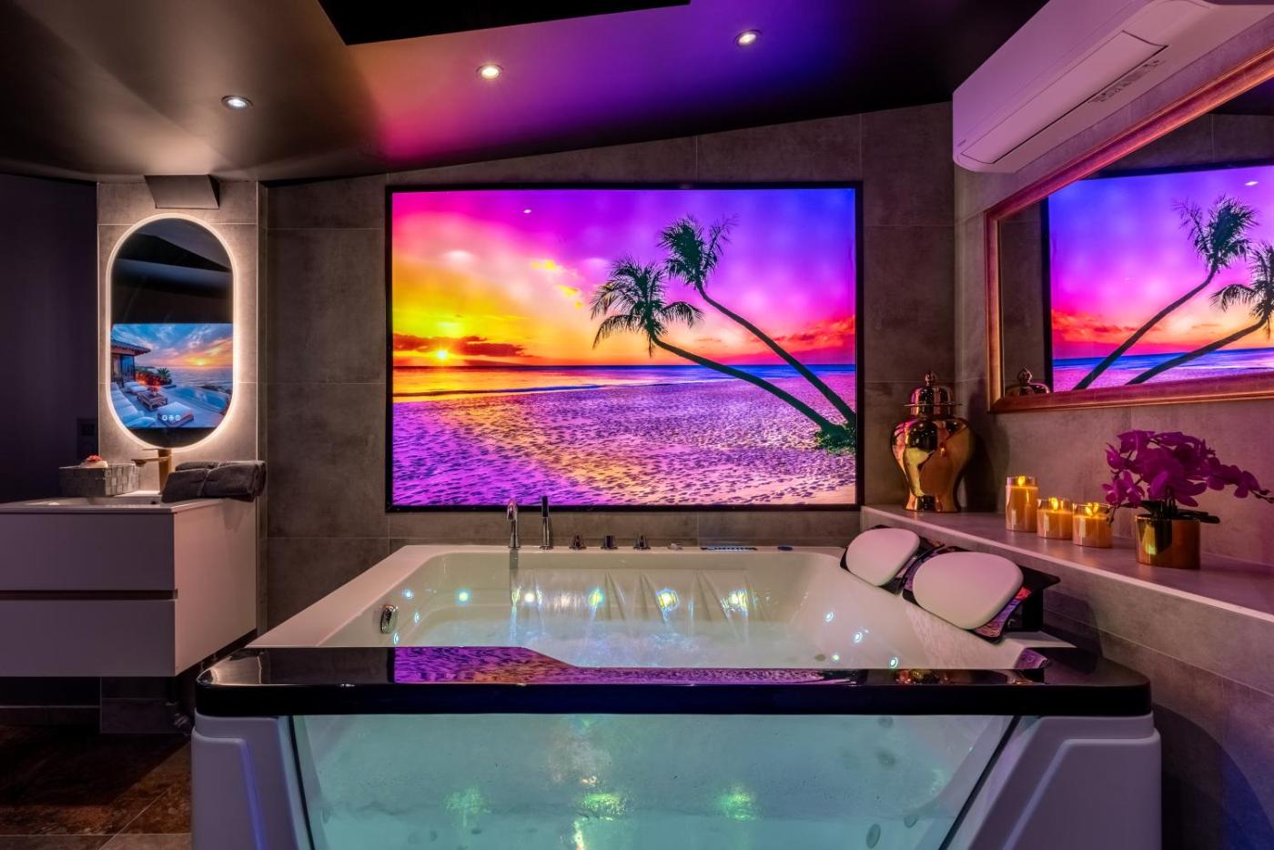 Appartement 1 Chambre. This apartment boasts a hot tub, spa bath and sauna. Guests can make meals in the kitchen that is fitted with a stovetop, a dishwasher, a microwave and a tea and coffee maker. This air-conditioned apartment is comprised of a dining area, a flat-screen TV with cable channels a private entrance and a terrace. The unit offers 1 bed.