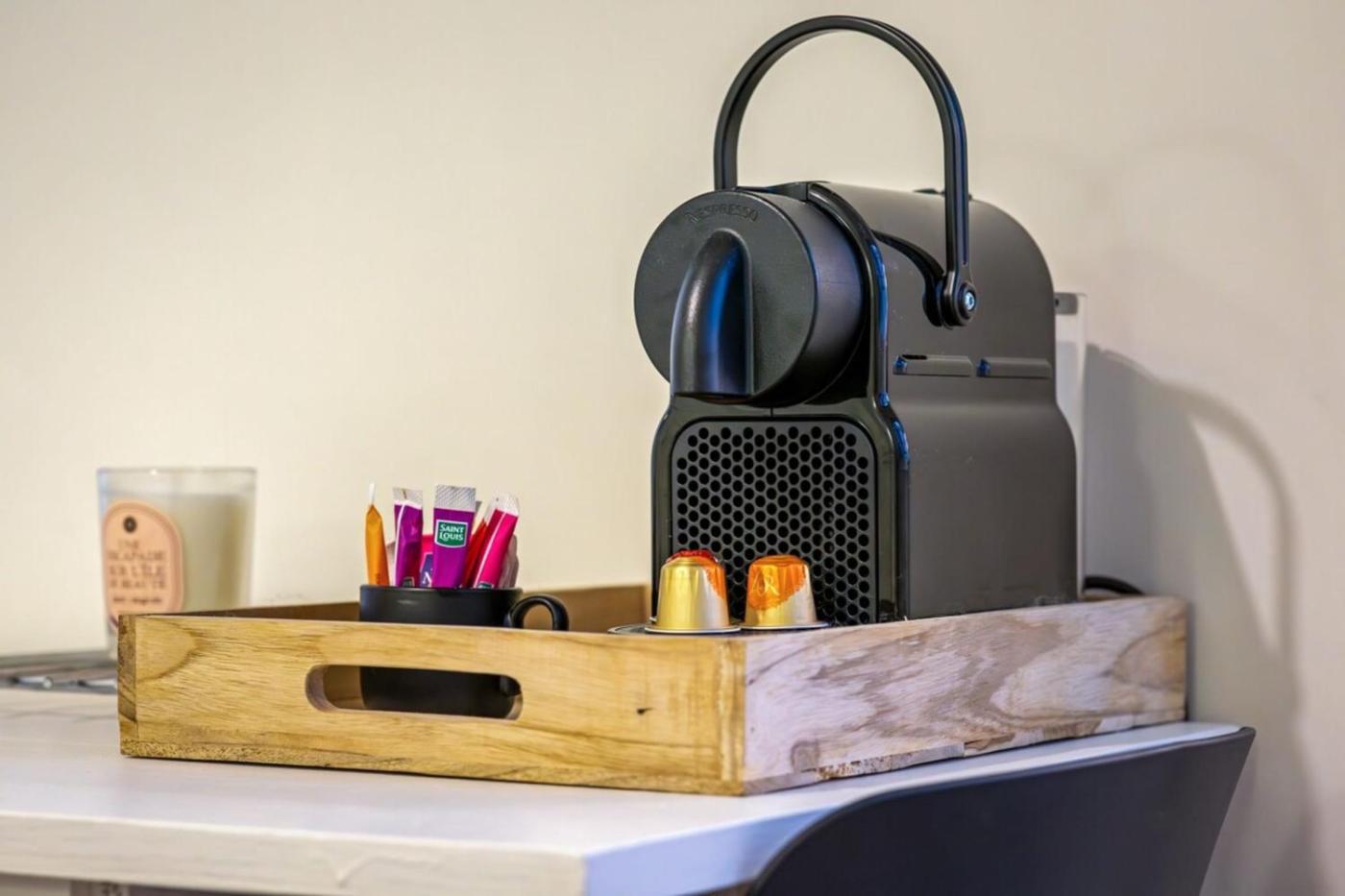 Appartement 1 Chambre Deluxe. Featuring free toiletries, this studio includes a private bathroom with a shower and a hairdryer. In the fully equipped kitchen, guests will find a stovetop, a refrigerator, kitchenware and a microwave. The studio features a TV, a private entrance, a coffee machine, a seating area as well as city views. The unit has 1 bed.