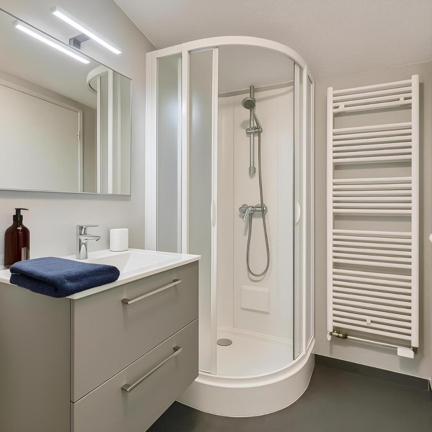 Appartement 1 Chambre. The apartment has 1 bedroom and 1 bathroom with a bath or a shower and free toiletries. In the well-equipped kitchenette, guests will find a stovetop, a refrigerator, kitchenware and a microwave. This apartment features a private entrance, a coffee machine, flat-screen TV, as well as chocolate for guests. The unit has 1 bed.