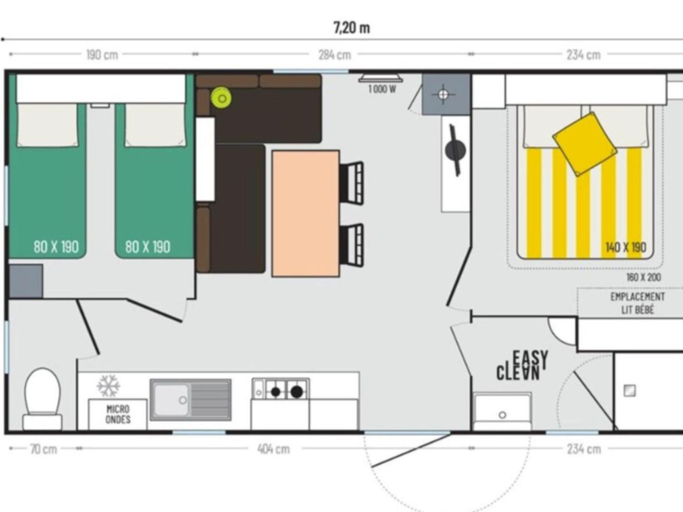 Mobile Home. Boasting 2 bedrooms and 1 bathroom, this mobile home has a living room and terraceyou can relax. The kitchen features a refrigerator, kitchenware and a microwave. Featuring outdoor furniture, this mobile home also features a private entrance, a coffee machine and a TV. The unit offers 4 beds.