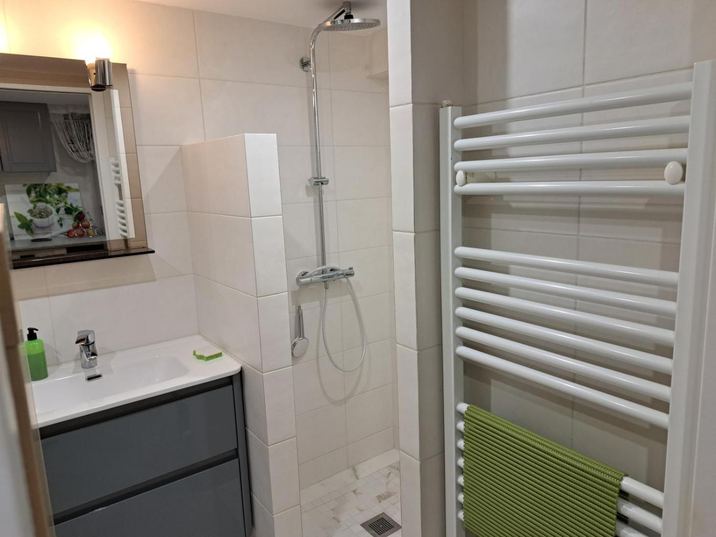 Appartement - Rez-de-Chaussée. This spacious apartment includes 1 living room, 2 separate bedrooms and 1 bathroom with a walk-in shower. In the well-equipped kitchen, guests will find a stovetop, a refrigerator, a dishwasher and kitchenware. Boasting a terrace with garden views, this apartment also offers a tea and coffee maker and a flat-screen TV. The unit has 5 beds.