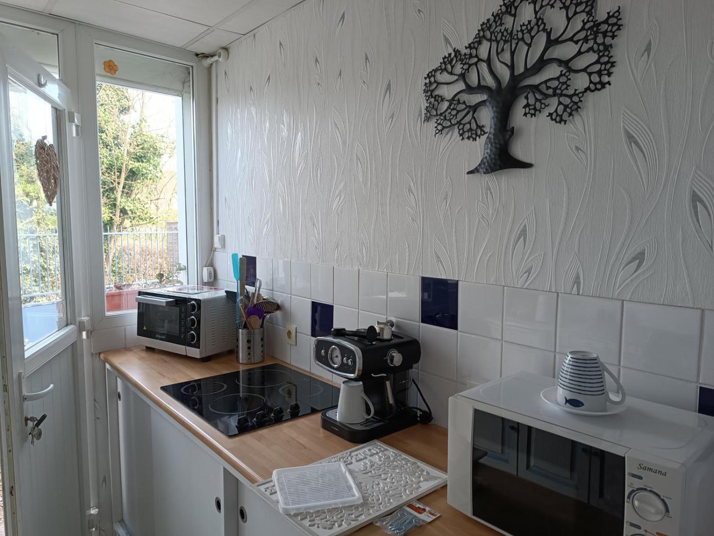 Appartement 1 Chambre. Boasting a private entrance, this apartment also includes 1 bedroom, a seating area and 1 bathroom with a shower and a hairdryer. Guests can make meals in the kitchen that has a stovetop, a refrigerator, kitchenware and a microwave. Featuring a terrace with garden views, this apartment also offers a tea and coffee maker and a flat-screen TV. The unit has 1 bed.