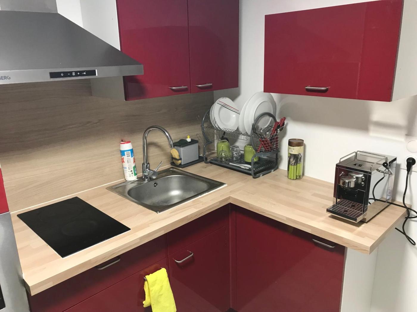 Chambre Double Standard avec Salle de Bains Commune. The double room provides a tea and coffee maker, a dining area, as well as a private bathroom featuring a shower and a hairdryer. Meals can be prepared in the well-fitted kitchen, which is equipped with a refrigerator, kitchenware, an oven and a microwave. This double room features a wardrobe, heating, a flat-screen TV and a quiet street view. The unit offers 1 bed.