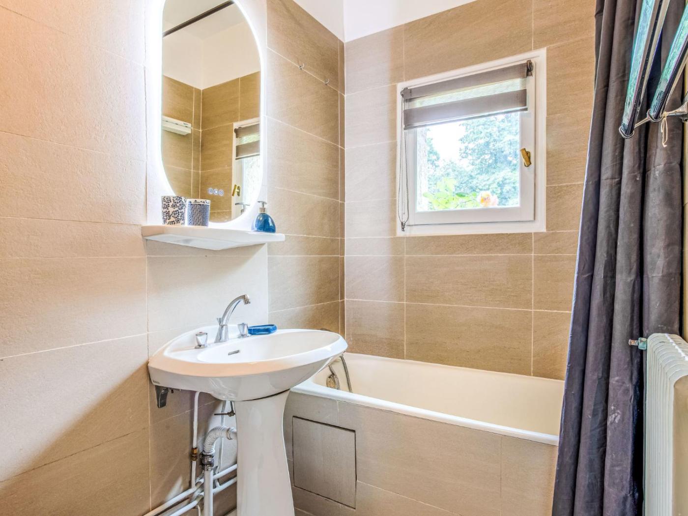 Cet appartement possède 2 chambres, une télévision, une cuisine équipée avec un réfrigérateur et un four, ainsi que 1 salle de bains avec une baignoire.
