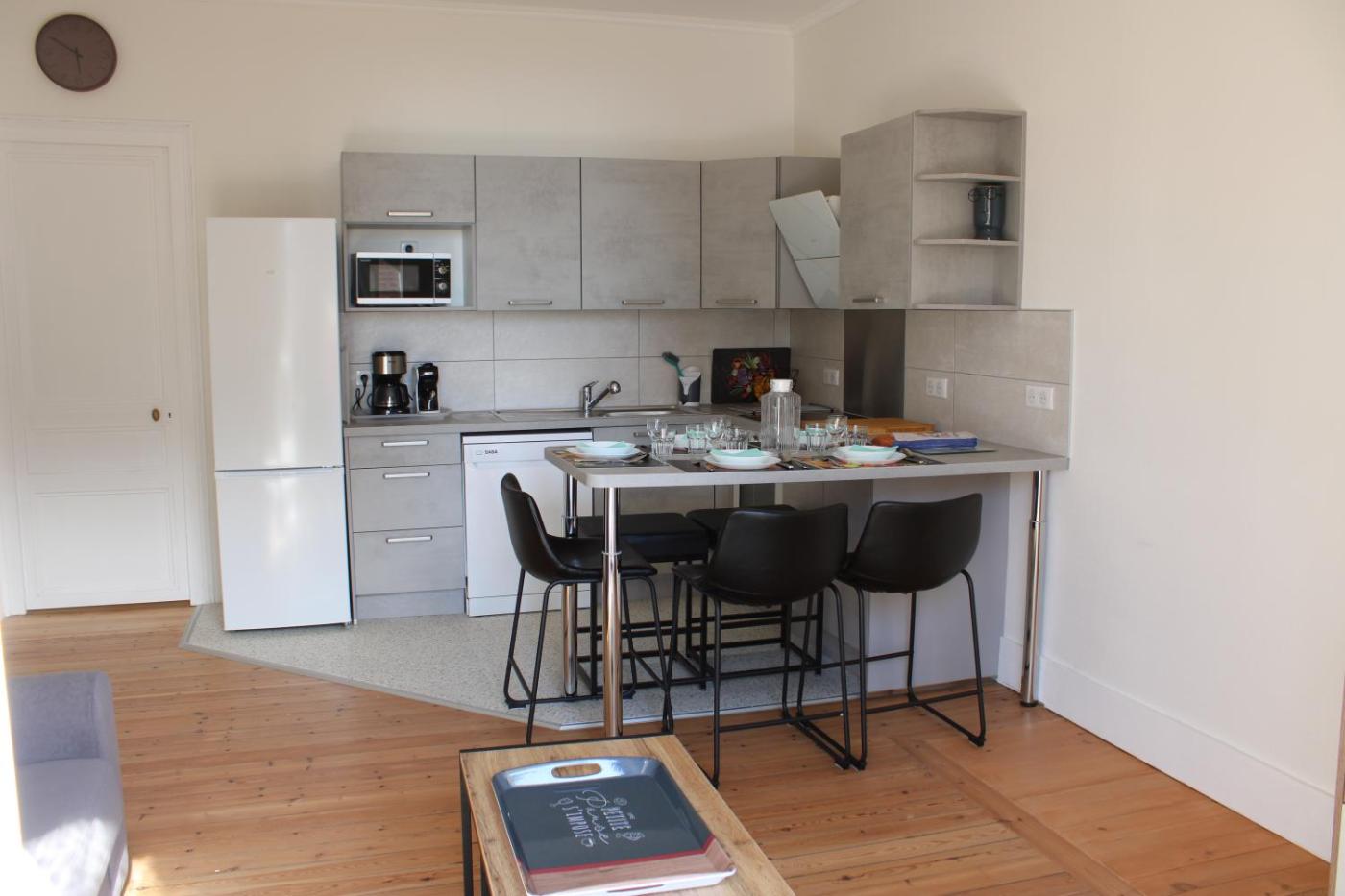 Appartement - Vue sur Mer. This apartment comes with a kitchen, a seating area, 2 separate bedrooms and 1 bathroom with a shower and a hairdryer. Guests can make meals in the kitchen that features a stovetop, a refrigerator, a dishwasher and kitchenware. Boasting a balcony with sea views, this apartment also features a tea and coffee maker and a flat-screen TV. The unit has 3 beds.