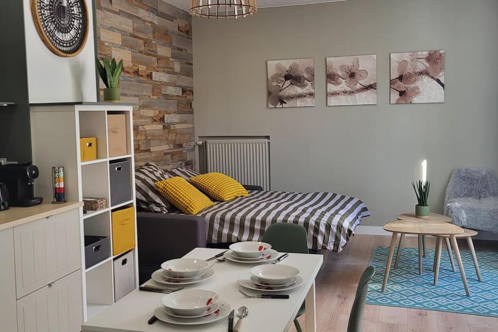 Appartement 1 Chambre. Boasting a private entrance, this apartment comes with 1 living room, 1 separate bedroom and 1 bathroom with a shower and a hairdryer. The well-equipped kitchen features a stovetop, a refrigerator, an oven and a microwave. This apartment has a washing machine, flat-screen TV with streaming services, ancourtyard view, as well as chocolate for guests. The unit has 2 beds.